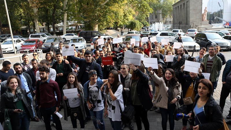 Երևանի պետական համալսարանի մոտ հավաքված ուսանողները, ովքեր բողոքում են Պաշտպանության նախարարության կողմից ներկայացված տարկետման իրավունքը վերացնող օրենսդրական նախագծի դեմ, երթով շարժվեցին են դեպի Կրթության և գիտության նախարարություն: