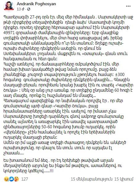 Հետախույզ Անդրանիկ Պողոսյանը ֆեյսբուքյան իր էջում գրել է.