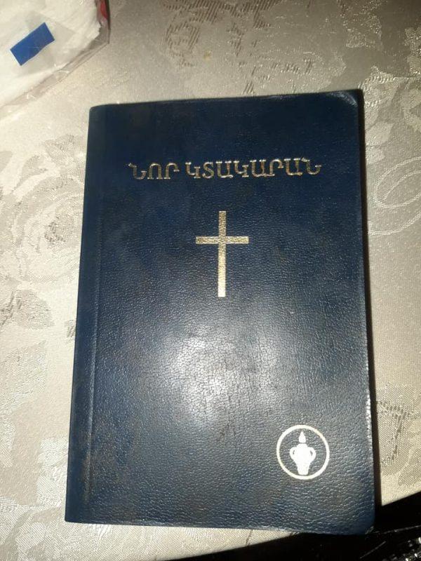Նոյեմբերի 6-ին Շուշիի խաչմերուկում, թշնամու գնդակոծության տակ ձորից դուրս է եկել վիրավոր վիճակում և հանդիպել հորս։ Հայրս օգնել է վիրակապել և ստիպել, որ դուրս գա գնդակոծության տակից… Երիտասարդը գրպանից հանել է արյունոտ կտակարանը տվել հորս` ասելով, որ այն կպահպանի հորս կյանքը…