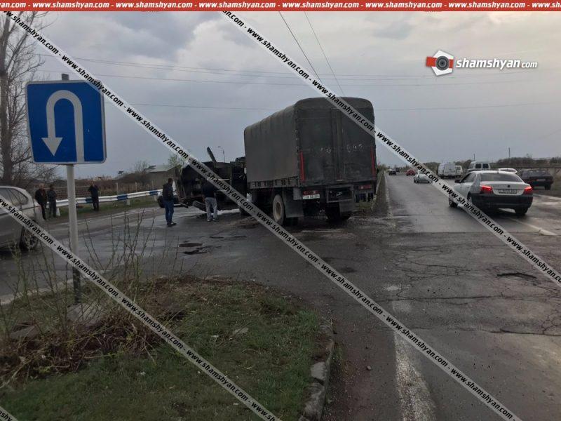 Երեկ՝ ապրիլի 10-ին, խոշոր ավտովթար է տեղի ունեցել Արմավիրի մարզում: Ժամը 17:00-ի սահմաններում, Երևան-Արմավիր ավտոճանապարհի 24 կմ-ին բախվել են ЗИЛ մակնիշի 2 բեռնատարներ: Ինչպես հայտնում է ֆոտոլրագրող Գագիկ Շամշյանը, վթարի հետևանքով բեռնատարներից մեկը կողաշրջվել է: