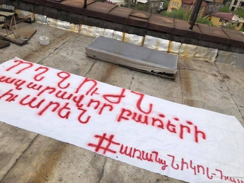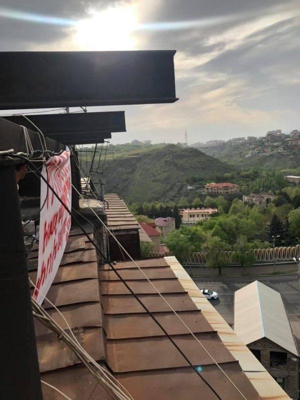 Նիկոլ Փաշինյանի առանձնատան դիմաց փակցվել են պաստառ ՝ «Ողջույն …. հազարավոր բառերի փոխարեն» մակագրությամբ։