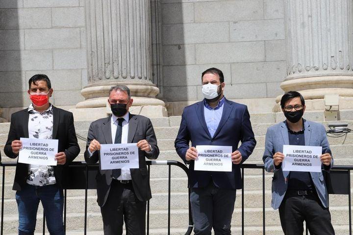 ««Ազատություն հայ ռազմագերիներին» գրառմամբ պաստառներով այսօր նրանք միասին լուսանկարվել են Կոնգրեսի կենտրոնական մուտքի առջև»,- ասված է դեսպանության տարածած տեղեկատվության մեջ: