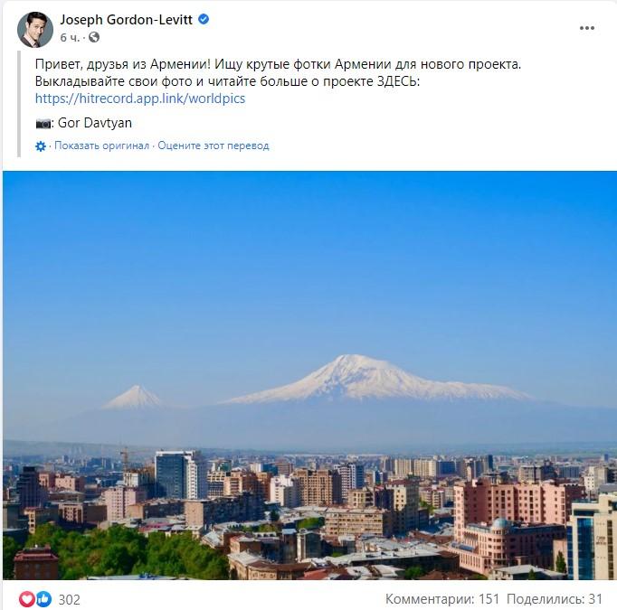 Հանրահայտ ամերիկացի դերասան, կինոռեժիսոր Ջազեֆ Գորդոն-Լևիթը Հայաստանից լուսանկարներ է ուզում: