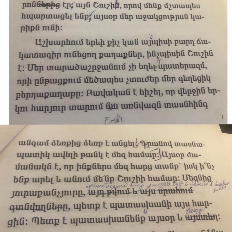 Իմ անձնական մե՜ծ արխիվից է: Նախագահ Սերժ Սարգսյանի ձեռագիրն է: Ավելացված բառերն էլ Շուշիի մասին են… Կարդացեք: