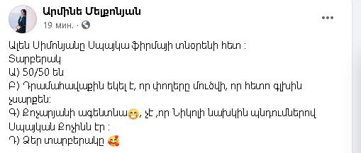 Արմինե Մելքոնյանի ֆեյսբուքյան էջից