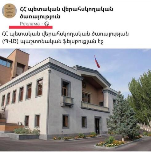 Սակայն, չեմ հասկանում, երբ Պետական վերահսկողության ծառայության ֆեյսբուքյան գովազդն եմ տեսնում: Փաստորեն, սրանք կամ ապրանք են, կամ ծառայություն, կամ էլ շատ հին մասնագիտության կրողների հիմնարկ: