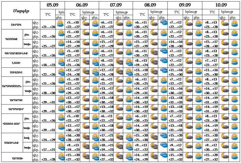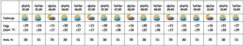 Սեպտեմբերի 5-ի ցերեկը, 6-10-ը սպասվում է առանց տեղումների եղանակ: