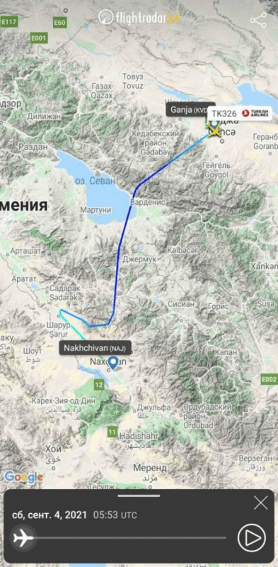 30 տարվա մեջ առաջին անգամ Ադրբեջանից ուղևորատար օդանավը կատարել է ներքին թռիչք՝ Հայաստանի օդային տարածքով։ Այս մասին վկայում են Flight Radar հարթակի տվյալները։ Ըստ հաղորդման՝ Turkish Airlines ավիաընկերությանը պատկանող Boeing-737 օդանավն իրականացրել է TK326 Գյանջա-Նախիջևան չվերթը սեպտեմբերի 4-ին։