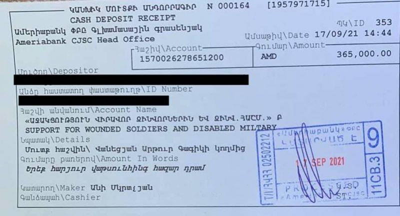 Ազգային ժողովի «Պատիվ ունեմ» խմբակցությունը հայտարարել էր, որ գումարն ուղղելու է պատերազմի հետևանքով առաջացած սոցիալական խնդիրների լուծմանը։