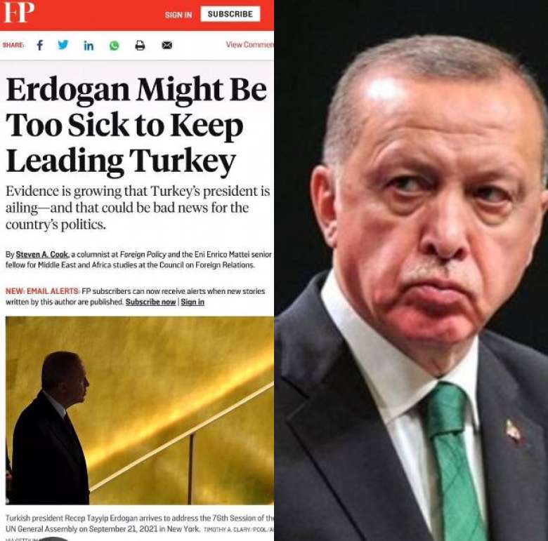 Թուրքիայի նախագահ Ռեջեփ Թայիփ Էրդողանի մոտ քաղցկեղ է ախտորոշվել, ինչի հետևանքով կարող է առաջանալ վերջինիս կողմից երկրի ղեկավարման անհնարինություն: Այս մասին հայտնում է ամերիկյան Foreign Policy ամսագիրը: