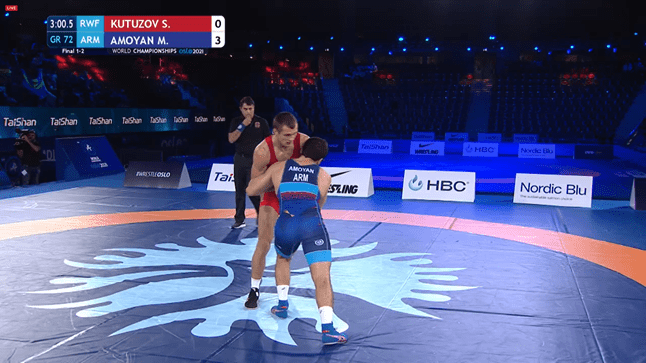 Երկրորդ մրցափուլում գորգի մրցավարը պասիվություն տվեց Ամոյանին եւ նստեցրեց պարտեր, բայց Կուտուզովին չհաջողվեց գլորել Ամոյանին: Գոտեմարտն ավարտվեց 3:1 հաշվով։