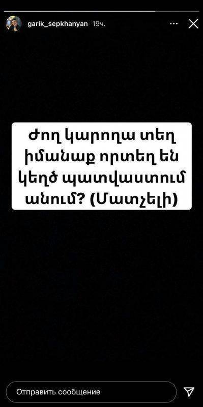 Հարցին՝ գրառումից հետո իրավապահ մարմիններից արձագանք չի՞ ստացել, դերասանը կատակելով ասաց. «Դեռ չէ, եթե վաղը զանգեք, անհասանելի լինեմ, ուրեմն ԱԱԾ նկուղում եմ»: