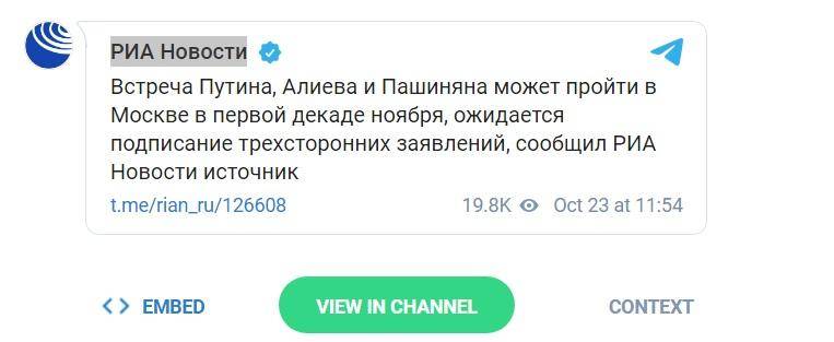 Ըստ ռուսական լրատվամիջոցի՝ սպասվում է եռակողմ հայտարարությունների ստորագրում:
