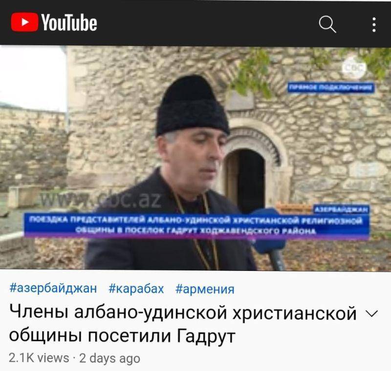 Նոյեմբերի 5-ին ադրբեջանական www.cbc.az-ի կողմից տեսանյութ է հրապարակվել, որտեղ կրկին ցուցադրվում է ուդիական համայնքի ներկայացուցիչների ,,ուխտագնացություն,, Հադրութի Սբ. Հարություն եկեղեցի և Հադրութ քաղաքից ոչ շատ հեռու, Վանք գյուղի Սպիտակ խաչ վանք: Համայնքի ներկայիս ղեկավար Ռոբերտ Մոբիլին և նրա տեղակալ Րաֆիկ Դանակարին հայկական եկեղեցիներում «աղվանական-ուդիական եկեղեցուն բնորոշ ծեսեր են կատարում»: Հարցազրույցում Ռոբերտ Մոբիլին խոսելով այսպես ասած «վնասների մասին», որ իբր թե ստացել էր ,,աղվանական մշակութային ժառանգությունը հայկական օկուպացիայի,, ժամանակ, նշում է թե իբր հայերը աղվանական-ուդիական եկեղեցիների պատերին ավելացրել են հայկական խաչեր, տեղադրել խաչքարեր, ավելացրել հայկական գրեր և դա արվել է աղվանական հետքերը ջնջելով: Եվ գրեթե միշտ ավելացնում է, որ իրենք պետք է նախնական, ասել է թե, ոչ հայկական տեսքի բերեն եկեղեցիները, ինչը մտահոգության տեղիք է տալիս: Ռոբերտ Մոբիլին հարցազրույցի ընթացքում չի մոռանում մի քանի անգամ շնորհակալություն հայտնել շեհիդներին, իրենց ,,սրբազան վայրերը,, ազատագրելու համար: Եթե Ռոբերտ Մոբիլին իրավամբ հոգևոր արժեքների կրող լիներ, ապա նա նման կեղծիքի մաս չէր կազմի, ու չէր դառնա ադրբեջանական կրկեսի ծաղրածու: