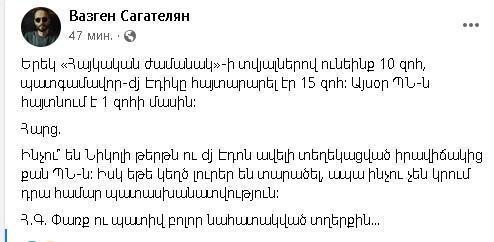 Ինչու՞ են Նիկոլի թերթն ու dj Էդոն ավելի տեղեկացված իրավիճակից, քան ՊՆ-ն: Իսկ եթե կեղծ լուրեր են տարածել, ապա ինչու չեն կրում դրա համար պատասխանատվություն: