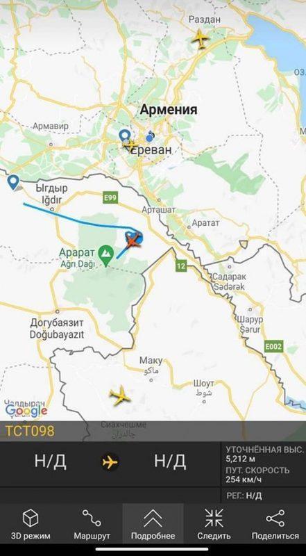 Ազատագրում ֆեյսբոիքյան էջը քարտեզ է տեղադրել, գրելով՝ Թուրքական անօդաչուն պտտվում է հայկական սահմանի մոտ