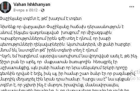 Վերլուծաբան Վահան Իշխանյանի ֆեյսբուքյան էջից
