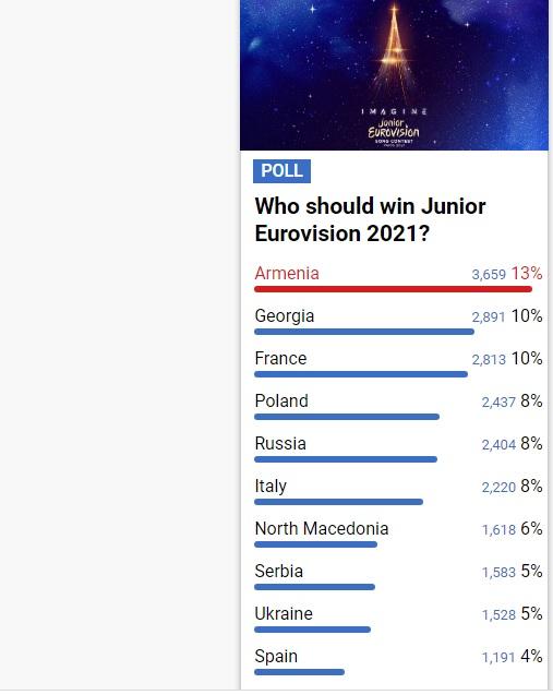 Հիշեցնենք, որ «Մանկական Եվրատեսիլ-2021» երգի միջազգային մրցույթին մասնակցում է 19 երկիր։ Մրցույթը տեղի կունենա դեկտեմբերի 19-ին, Ֆրանսիայի մայրաքաղաք Փարիզում: