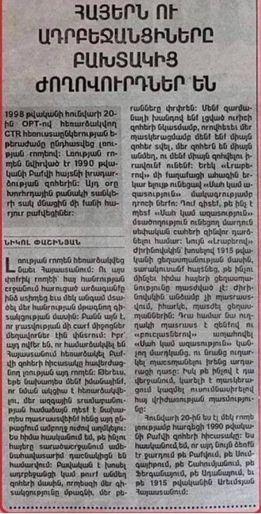 «Սա նիկոլ փաշինյանի հոդվածն է, որը նա գրել է 1998թ-ին «Մոլորակ» թերթում:
