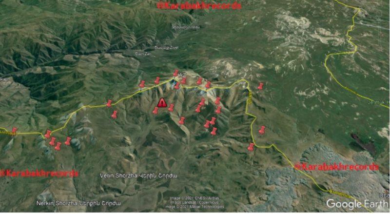 Քարտեզի վրա կարմիր եռանկյունով կարող եք տեսնել հրդեհված ադրբեջանական դիրքը, իսկ մնացած նշված կետերը պատկերում ենՀՀ տարածքում գտնվող ադրբեջանական մյուս դիրքերը:
