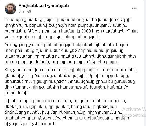 Վավերագրող, ռեժիսոր Հովհաննես Իշխանյանը ֆեյսբուքյան իր էջում գրել է․
