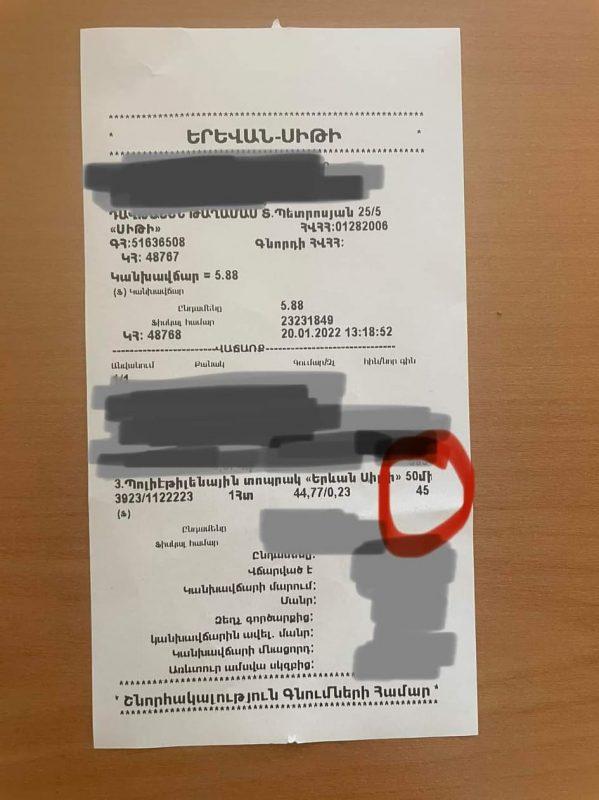 Գործարար, ԱԺ նախկին պատգամավոր Սամվել Ալեքսանյանին պատկանող «Երևան Սիթի» սուպերմարկետների ցանցը թանկացրել է պոլիէթիլենային տոպրակների գինը: Օրինակ՝ նախկինում դրանց գինը 15 դրամ էր, այսօր` 45 դրամ։ Այս մասին տեղեկանում ենք համացանցում տարածված ՀԴՄ կտրոնից, որը քաղաքացին ներկայացնում է որպես փաստ։ Եվ ստացվում է, որ որևէ ապրանք տոպրակի մեջ տեղադրելու համար գնորդը պետք է վճարի եռակի անգամ ավել: