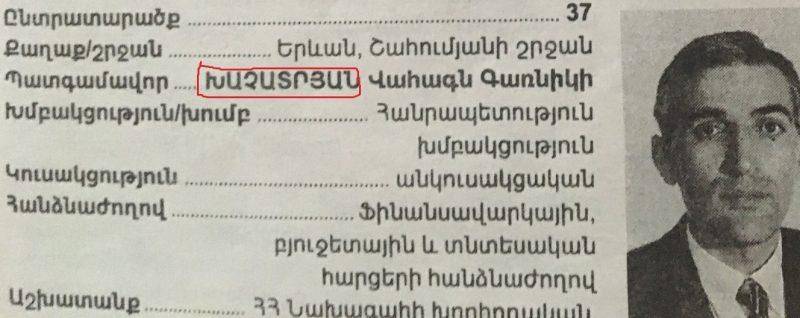 Որևէ մեկն ունի՞ սպառիչ բացատրություն, թե ե՞րբ, ինչպե՞ս և ինչու՞ է Վահագն Խաչատրյանը դարձել Խաչատուրյան (համենայնդեպս շատ լրատվամիջոցներ հիմա նրան Խաչատուրյան ազգանվամբ են հիշատակում)։ Ստորև բերված նկարն արել եմ Ազգային Ժողովի՝ 1996թ. հրատարակված ուղեցույց գրքույկից, որում 4 տեղ նա հիշատակված է Խաչատրյան։ Տարիներ շարունակ լուսաբանելիս նրա ազգանունը հիշատակել ենք առանց ու-ի, ոչ մի անգամ չի սրտնեղել, թե սխալ ենք, չի ուղղել… Եկեք հիմա պարզենք, թե ինչ է պատահել, թե չէ՝ ընտրվելուց հետո հրաժարական տված նախագահ Արմեն Սարգսյանի դարդը մի անգամ էլ չվերապրենք…