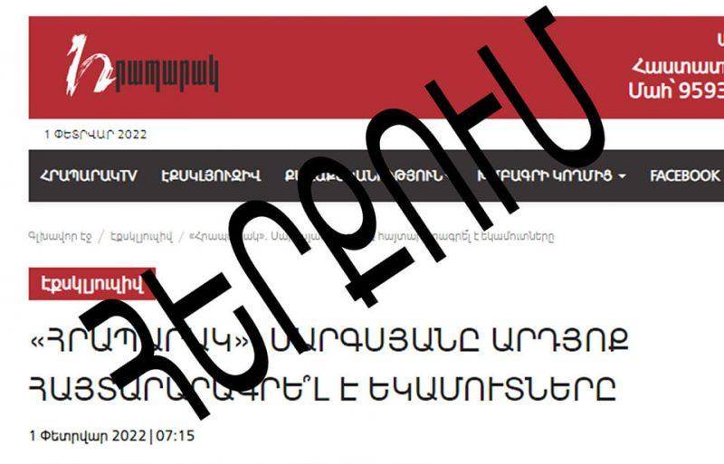 Հետևաբար, այս թեմայով հրապարակումները չեն համապատասխանում իրականությանը և հասարակությանը մոլորեցնելու նպատակ են հետապնդում: