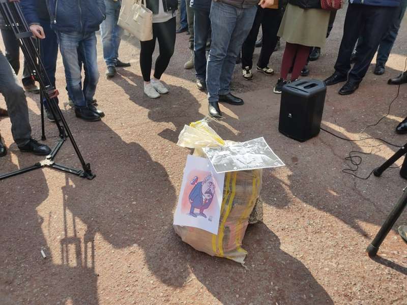 Բևեռի երիտասարդ աջակիցները կարտոֆիլ են տարել դեսպանատուն, որի վրա փակցված է Բելառուսի բռնապետի նկարը։