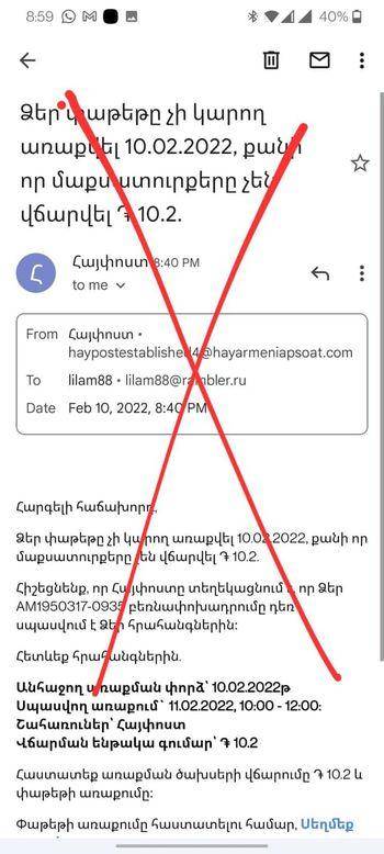 Ժող ջան, Հայփոստի անունից կեղծ նամակներ են գալիս։ Զգուշացեք