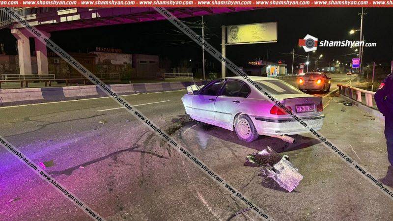 Բախման հետևանքով BMW-ի անվահեծանը կոտրվել է, և վնասվել է գովազդային վահանակը։