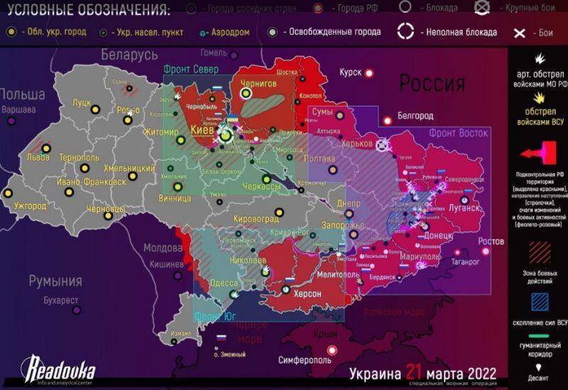 Readovka.news-ն հրապարակել է նաև Ուկրաինայում ռազմական գործողությունների քարտեզը՝ մարտի 21-ի դրությամբ: