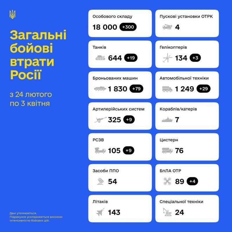 Ռուսաստանի ընդհանուր կորուստները 2022 թվականի ապրիլի 3-ի դրությամբ.