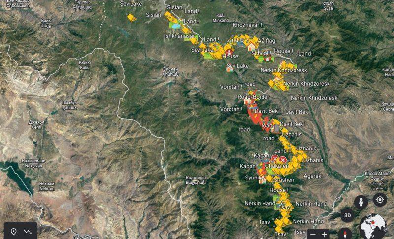 Այս քարտեզը 1 տարվա անդադար փաստահավաք աշխատանքների արդյունք է. ադրբեջանական [անօրինական] տեղակայումներ են, որոնք ցուցադրված են պայմանական դեղին վրաններով: