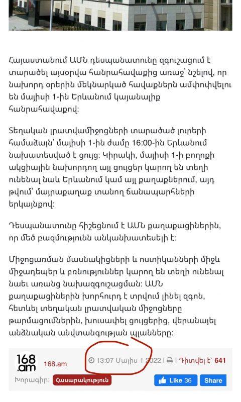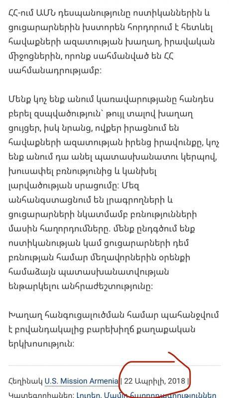 Ձեր առջև ԱՄՆ դեսպանատան երկու հայտարարություններ են, գրում է Արմեն Աշոտյանը։