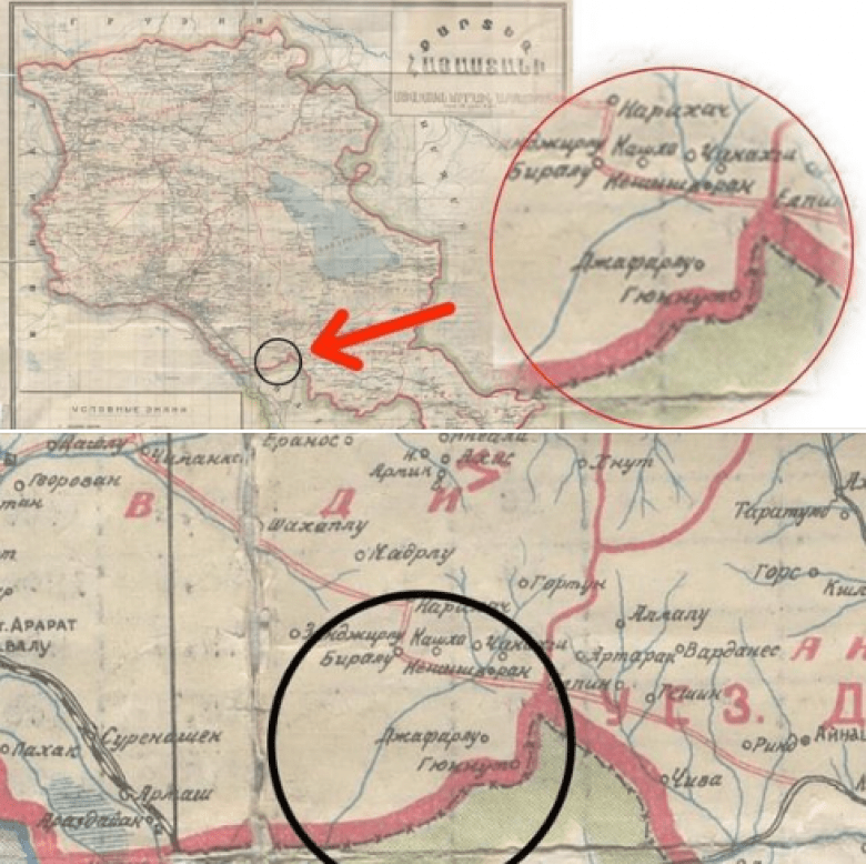 Օրինակ` ՀԽՍՀ 1926թ. քարտեզում գյուղը կազմում է Հայաստանի մասը: