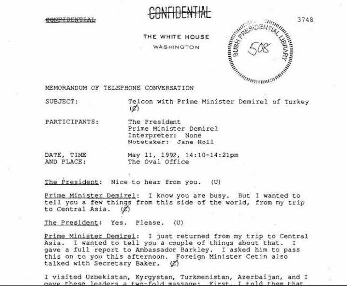 Եվ այսպես, 1992 թվականի մայիսի 11-ին ԱՄՆ նախագահ Բուշը հեռախոսազանգ է ստանում Թուրքիայի վարչապետ Դեմիրելից, որն ընդամենը 11 րոպե է տևում։