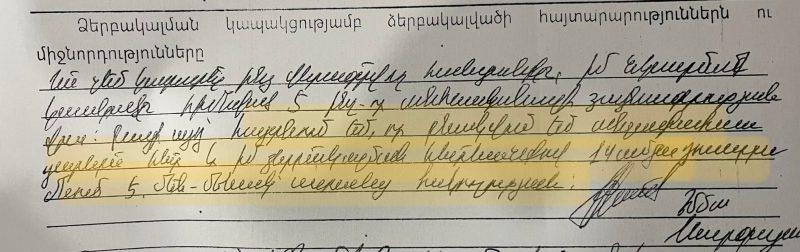 Հաշվի առնելով Քննչական կոմիտեի պաշտոնական հաղորդագրությունում նշված ձայնագրության վկայակոչումը՝ քաղաքացի Էմմա Սարգսյանի հետ ինքնակամ ներկայացել ենք ՔԿ Երևանի վարչություն»։