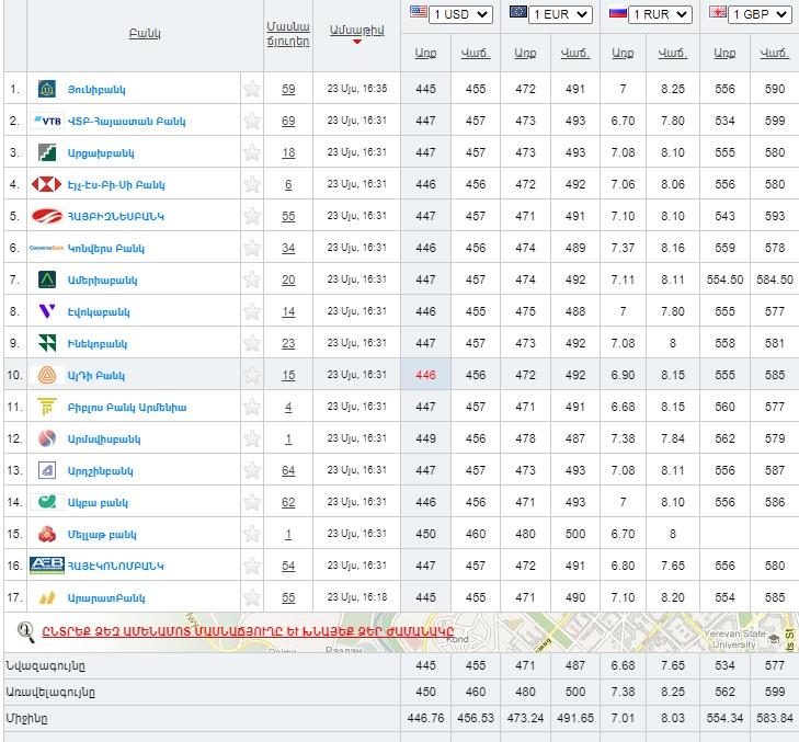 ԱՄՆ դոլարի փոխարժեքն այսօր՝ մայիսի 23-ին, կազմել է 455,73 դրամ: Այս մասին տեղեկանում ենք Կենտրոնական բանկի պաշտոնական կայքից։