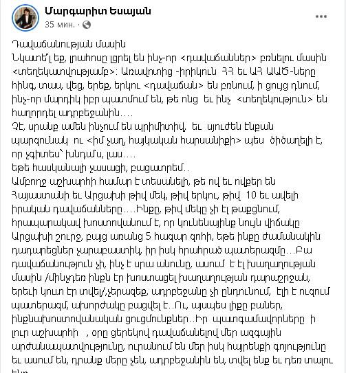 Մարգարիտա Եսայանի ֆեյսբուքյան էջւց