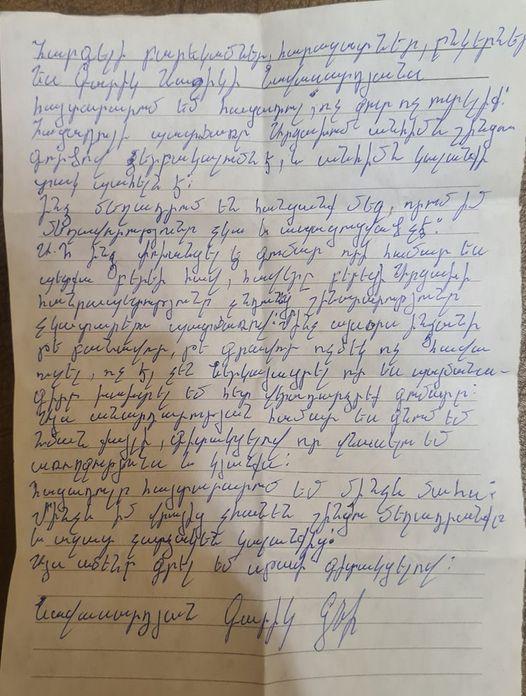 Գարիկը նամակ է փոխանցել , որ վաղվանից մտնում է հացադուլի, կամ արդարություն ,կամ մահ ։