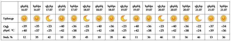 Հուլիսի 16-ի ցերեկը և 17-21-ը սպասվում է առանց տեղումների եղանակ: