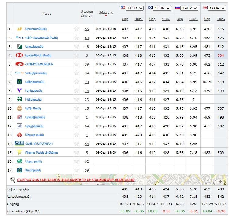 ԱՄՆ դոլարի փոխարժեքն այսօր՝ օգոստոսի 9-ին, կազմել է 406.28 դրամ՝ նախորդ օրվա համեմատ նվազել է 0.33 դրամով:
