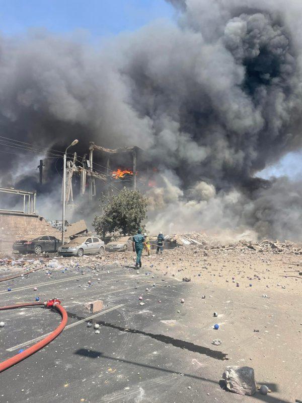 Ֆեյսբուքյան օգտատեր Աշոտ Սարգսյանը նոր կադրեր է տեղադրել ֆեսբուքյան իր էջում հզոր պայթյունի վայրից, գրելով՝ Շտապօգնությունը, ԱԻն-ը, պարեկները բոլորը տեղում են, վիրավորների ու զոհերի մասին դեռ տեղեկութուն չկա: