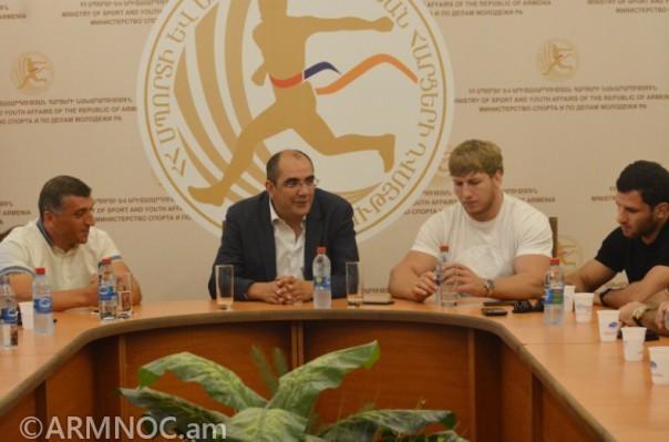 Ըմբշամարտի աշխարհի չեմպիոններ Մաքսիմ Մանուկյանի և Արթուր Ալեքսանյանի գոտեմարտերն անմիջապես մրցավայրում դիտելուց հետո մոսկվաբնակ հայ գործարար և սպորտի բարեկամ Էդգար Արամյանը որոշել է պարգևատրել հայ մարզիկներին: