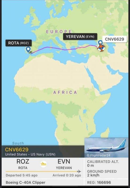 Տելեգրամյամ ալիքները տեղեկություն են տարածել, որ Երևանում վայրեջք է կատարել ամերիկյան ռազմական մարդա-բեռնատար BOEING C-40A (ազդանանային համարը-CNV6629)ինքնաթիռը.