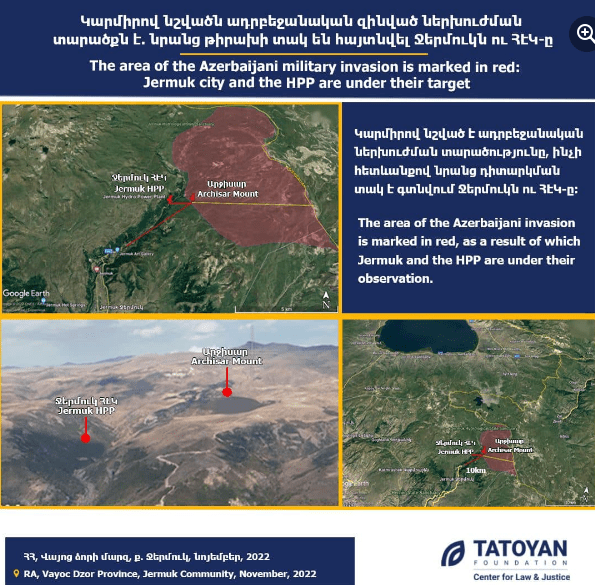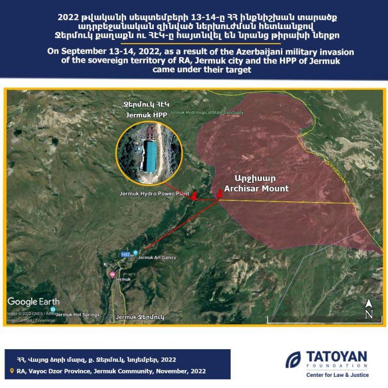 Ազգային անվտանգության լրջագույն խնդիրների առաջ ենք կանգնած հենց այն պատճառով, որ ադրբեջանական զինված ուղիղ նշանառության տակ են ՀԷԿ Ջերմուկում, «Տաթև» ՀԷԿ–ը, Կապանի Գեղանուշի պոչամբարը, «Սյունիք» օդանավակայանը և ռազմավարական նշանակության այլ օբյեկտներ։ Այս մասին իր ֆեյսբուքյան էջում գրել է «Թաթոյան» հիմնադրամի տնօրեն, նախկին ՄԻՊ Արման Թաթոյանը իր ֆեյսբուքյան էջում եւ լուսանկարներ հրապարակել: