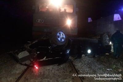 ԱԻՆ-ից հայտնում են, որ Մ-6 ավտոճանապարհի Վանաձոր-Ալավերդի հատվածի մոտ 15-րդ կմ-ին «Nissan Pathfinder» մակնիշի ավտոմեքենան (վարորդ՝ Լ․ Հ․, ծնված 1947 թ․) դուրս է եկել երթևեկելի հատվածից և կամրջից ընկնելով երկաթգծի վրա՝ բախվել բեռնատար գնացքին: