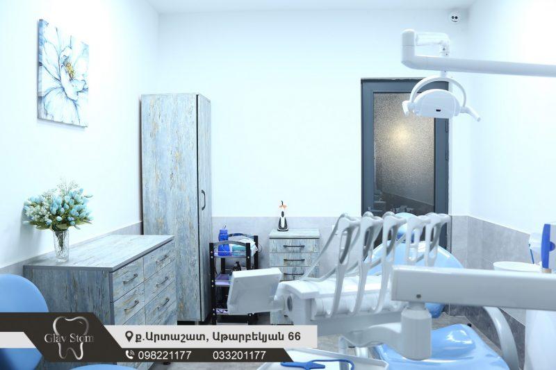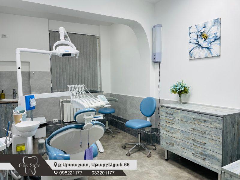 Արտաշատ քաղաքում գտնվող «Գլավ ստոմ» ստոմատոլոգիական կլինիկայում իրականացվում է ստոմատոլոգիական ցանկացած տեսակի միջամտություն՝ բացառությամբ այն միջամտությունների, որոնք պահանջում են ստացիոնար հիվանդանոցային պայմաններ։ Արտաշատում գտնվող կենտրոնի հետ մեկտեղ մասնաճյուղեր կան նաև Մոսկվայում: Երկու կլինիկաներն էլ առաջարկում են ստոմատոլոգիական հետևյալ ծառայությունները՝ թերապևտիկ, վիրաբուժական, օրթոպեդիկ, օրթոդոնտիկ, ինչպես նաև կոսմետոլոգիական միջամտություններ։