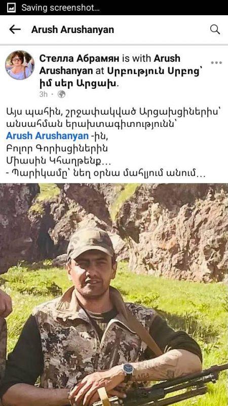 Արցախի բնակիչ Ստելլա Աբրահամյանը ֆեյսբուքյան գրառում է արել, որում նշվում է.